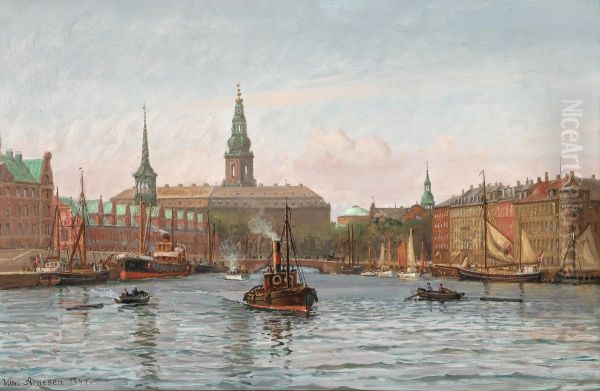 Bring the timeless beauty of Vilhelm Arnesen's View from Copenhagen Habour with a view towards The Stock Exchange and Christiansborg Palace. into your home with a handmade oil painting reproduction. Carefully recreated on canvas by skilled artists using traditional techniques, this piece captures the delicate brushwork, subtle light, and vibrant color of the original masterpiece. With museum-level quality and rich texture, it brings elegance and artistic depth to any space. Enjoy free shipping and make this masterpiece a part of your personal collection.