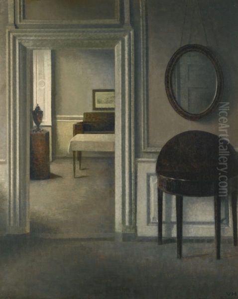 Bring the timeless beauty of Vilhelm Hammershoi's Interior With A Mirror into your home with a handmade oil painting reproduction. Carefully recreated on canvas by skilled artists using traditional techniques, this piece captures the delicate brushwork, subtle light, and vibrant color of the original masterpiece. With museum-level quality and rich texture, it brings elegance and artistic depth to any space. Enjoy free shipping and make this masterpiece a part of your personal collection.