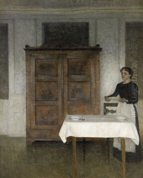 Bring the timeless beauty of Vilhelm Hammershoi's Pigen Daekker Bord into your home with a handmade oil painting reproduction. Carefully recreated on canvas by skilled artists using traditional techniques, this piece captures the delicate brushwork, subtle light, and vibrant color of the original masterpiece. With museum-level quality and rich texture, it brings elegance and artistic depth to any space. Enjoy free shipping and make this masterpiece a part of your personal collection.