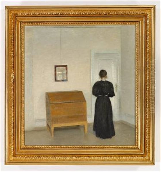 Bring the timeless beauty of Vilhelm Hammershoi's Stue. Tilhojre Op Mod Den Gullig-hvide Bagvaeg, Et Gult Chatol Paa Hoje Ben. Derover Et Firkantet Spejl I Mahogni-ramme. Tilhojre En Hvid Dor Med Messing-beslag. I Forgrunden, Tilvenstre For Billedets Midte, En Ung Sortklaedt... into your home with a handmade oil painting reproduction. Carefully recreated on canvas by skilled artists using traditional techniques, this piece captures the delicate brushwork, subtle light, and vibrant color of the original masterpiece. With museum-level quality and rich texture, it brings elegance and artistic depth to any space. Enjoy free shipping and make this masterpiece a part of your personal collection.