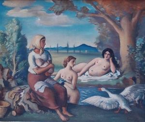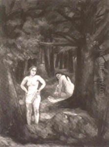 Figure Composition. Two Nudes In A Landscape With A Stream