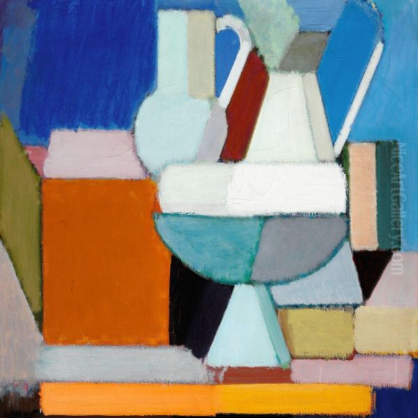 Still Life With White Bowl, Two White Jugs And Books