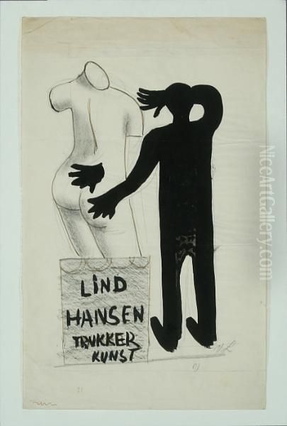 "lind Hansen Trykker Kunst". Sketch For Adverticement. Signed Monogram Vl