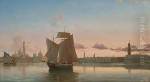 A Man-o-war Firing A Salute Off A Headland With Other Shipping In The Distance