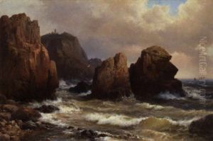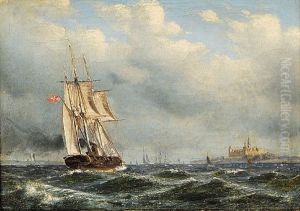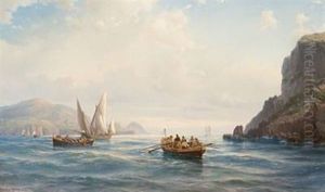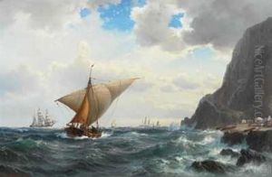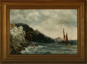 An English Three-masted Frigate And Several Sailing Ships Off A Rocky Coast
