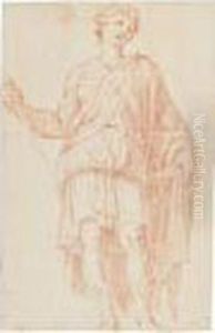 Portrait Of A Lady With A Golden Crown, Floral Gown And A Range In Hand