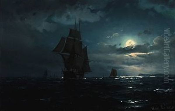 Seascape With Sailing Ships In Moonlight
