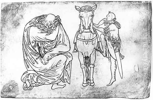 Facsimile copy of Ms Fr 19093 fol.23v Man seated, Knight mounting his horse