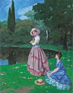 Young Ladies Beside A Lake
