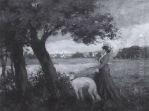 A Lady And A Lurcher In Wooded Landscape