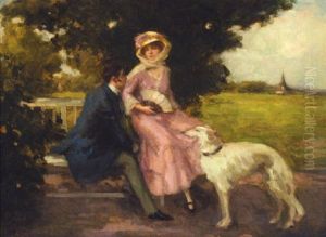 Ladies With A Greyhound In A Landscape
