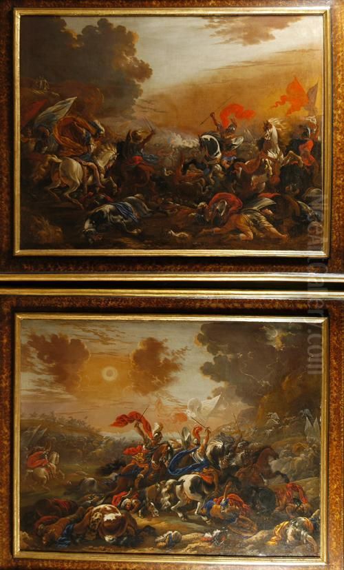 Bring the timeless beauty of Vincent Adriaenssen's " Scene Di Battaglia " Coppia Di Oli Su Tela ( Cm. 111x144) In Cornici Dell'epoca into your home with a handmade oil painting reproduction. Carefully recreated on canvas by skilled artists using traditional techniques, this piece captures the delicate brushwork, subtle light, and vibrant color of the original masterpiece. With museum-level quality and rich texture, it brings elegance and artistic depth to any space. Enjoy free shipping and make this masterpiece a part of your personal collection.