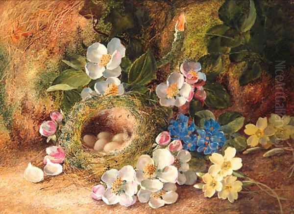Apple Blossom, Primroses, a Bird's Nest with Eggs, on a mossy Bank
