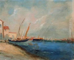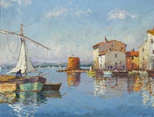 Sudfranzosische Hafenansicht Mit Ankernden Fischerbooten Im Abendlicht