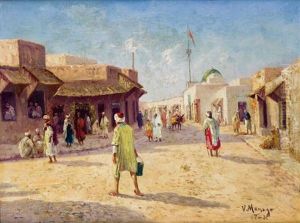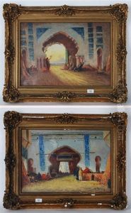 Village Scene In The Magreb (+ A Companion Pair By Another Hand; 2 Works)