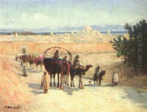 Caravane Au Bord D'un Oued (+ Personnages Au Bord De L'eau; Pair)