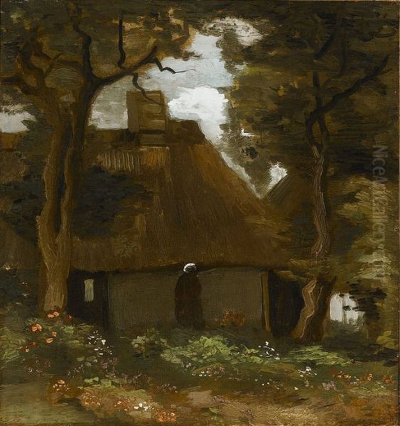 Cottage With Trees And Peasant Woman