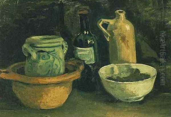 Bring the timeless beauty of Vincent Van Gogh's Still Life With Pottery And Two Bottles into your home with a handmade oil painting reproduction. Carefully recreated on canvas by skilled artists using traditional techniques, this piece captures the delicate brushwork, subtle light, and vibrant color of the original masterpiece. With museum-level quality and rich texture, it brings elegance and artistic depth to any space. Enjoy free shipping and make this masterpiece a part of your personal collection.