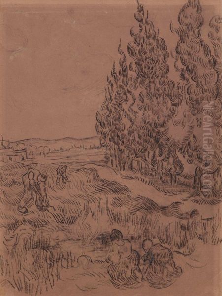 Bring the timeless beauty of Vincent Van Gogh's Cypresses with four people working in the field into your home with a handmade oil painting reproduction. Carefully recreated on canvas by skilled artists using traditional techniques, this piece captures the delicate brushwork, subtle light, and vibrant color of the original masterpiece. With museum-level quality and rich texture, it brings elegance and artistic depth to any space. Enjoy free shipping and make this masterpiece a part of your personal collection.