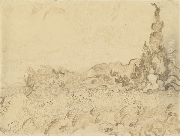 Wheatfield with Cypresses