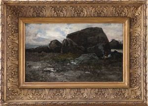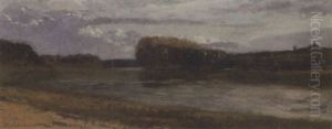 Figures On A Track By A Riverside Cottage