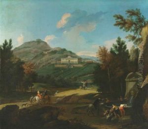 An Italianate Landscape With A Hilltop Villa And Travellers