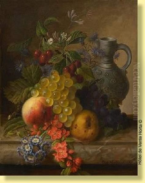 Composition Aux Fleurs, Fruits Et Pichet De Gres