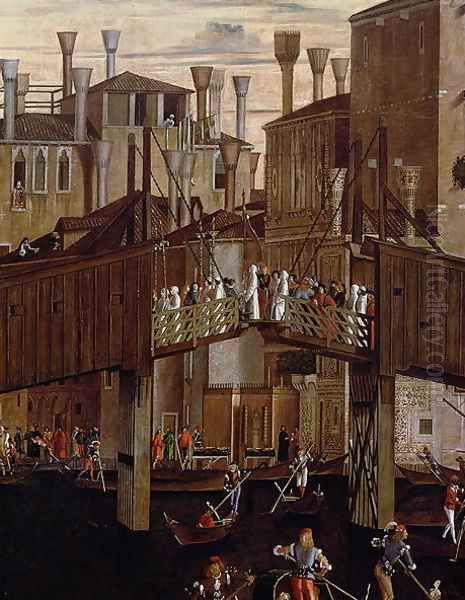 The Miracle of the Relic of the Holy Cross, detail of the old Rialto Bridge, from the Scuola di San Giovanni Evangelista, c.1494