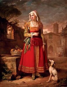 Portrait Of A Young Man, Standing Half-length, In A Scarlet Coat, A Plumed Hat And Holding A Hound On A Leash At His Side