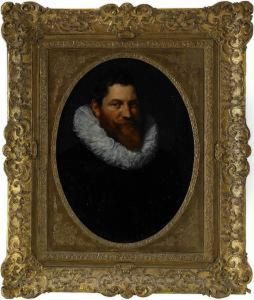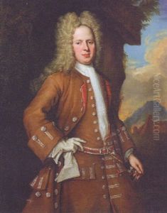Portrait Of A Young Man In A Red Coat And Plumed Hat Holding A Hound On A Lead
