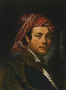 Portrait Of A Man, Bust-length, Wearing A Red Headscarf