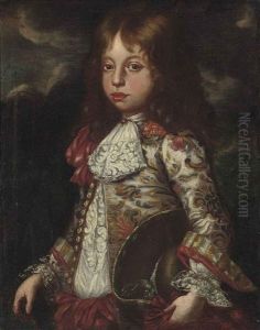 Portrait Of A Young Boy In A Lace Trimmed Embroidered Coat, A Hat Under His Left Arm