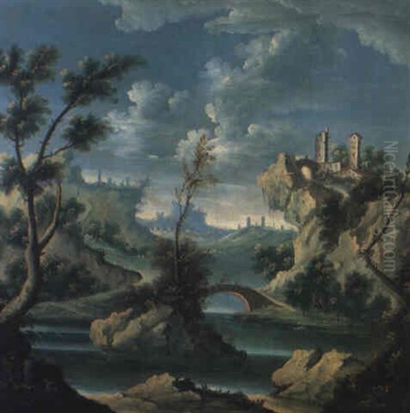 Paesaggio Fluviale Fantastico Oil Painting by Vittorio Amadeo Cignaroli