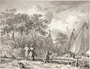 A Capriccio Of Classical Ruins With Figures On A Road, A Landscapewith A Town Beyond