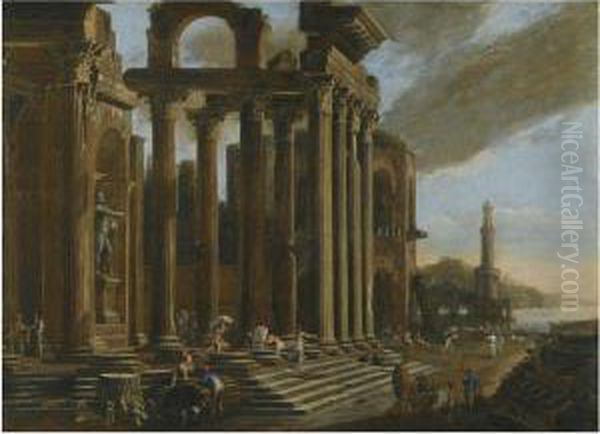 An Architectural Capriccio With Figures Amongst Classical Ruins
