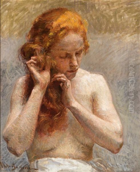 Bring the timeless beauty of Vlacho Bukovac's Weiblicher Halbakt Mit Roten Haaren into your home with a handmade oil painting reproduction. Carefully recreated on canvas by skilled artists using traditional techniques, this piece captures the delicate brushwork, subtle light, and vibrant color of the original masterpiece. With museum-level quality and rich texture, it brings elegance and artistic depth to any space. Enjoy free shipping and make this masterpiece a part of your personal collection.