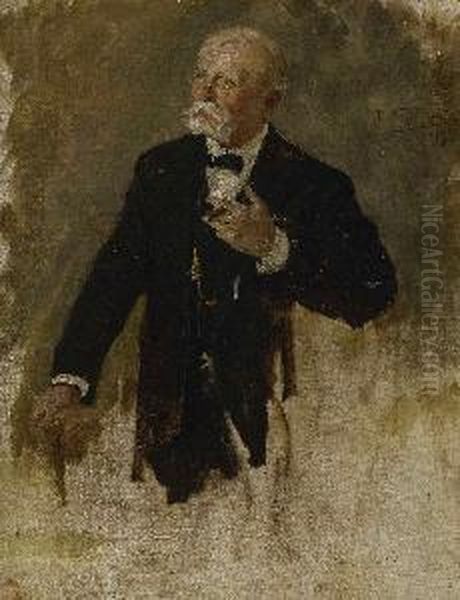 Bildnis Eines Alteren Herren Mit Gehstock.