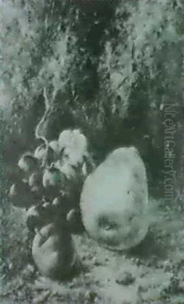 Still Life Of Grapes, A Crab Apple And A Pear On A Mossy Bank.