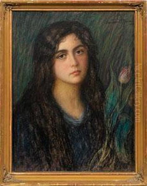 Portrait Eines Madchensmit Tulpe