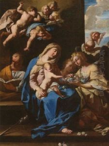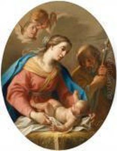 Anbetung. Maria Vor Dem Christuskind Und Drei Hirten