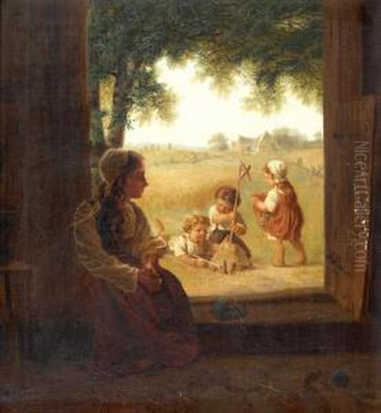 Bauernmadchen Mit Spielenden Kindern