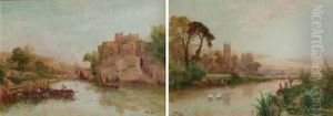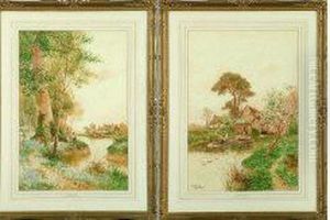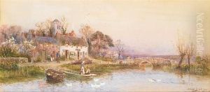Figures Outside A Riverside Cottage; Rowing In