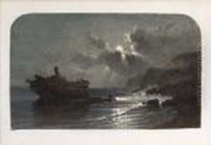 A Steam Train And Telegraph Wires Beneath A Sunburst