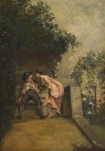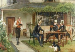Garden Scene With A Gentleman Seated At A Table