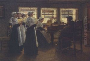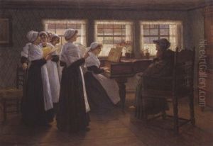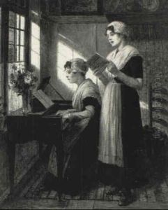 Die Schlesische Sangerin - Im Sessel Vor Dem Klavier Sitzend, Gibt Sie Einer Gruppe Junger Madchen Gesangsunterricht