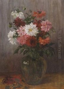 Dahlienstraus In Bauchiger Glasvase