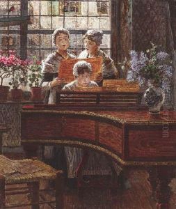 Das Hauskonzert. Eine Junge Sangerin Mit Einer Begleiterin Am Klavier Singt Vor