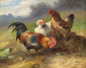 A Cockerel And Chickens In A Landscape