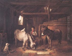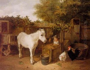 Ponies, A Calf And Poultry In A Farmyard