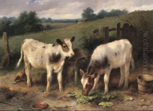 Calf With Duck By A River Oil On Canvas